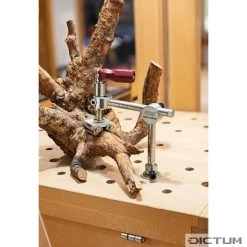 Pression contrôlable par levier excentrique. Bras de serrage mobile. Rail zingué, bras en hêtre local.