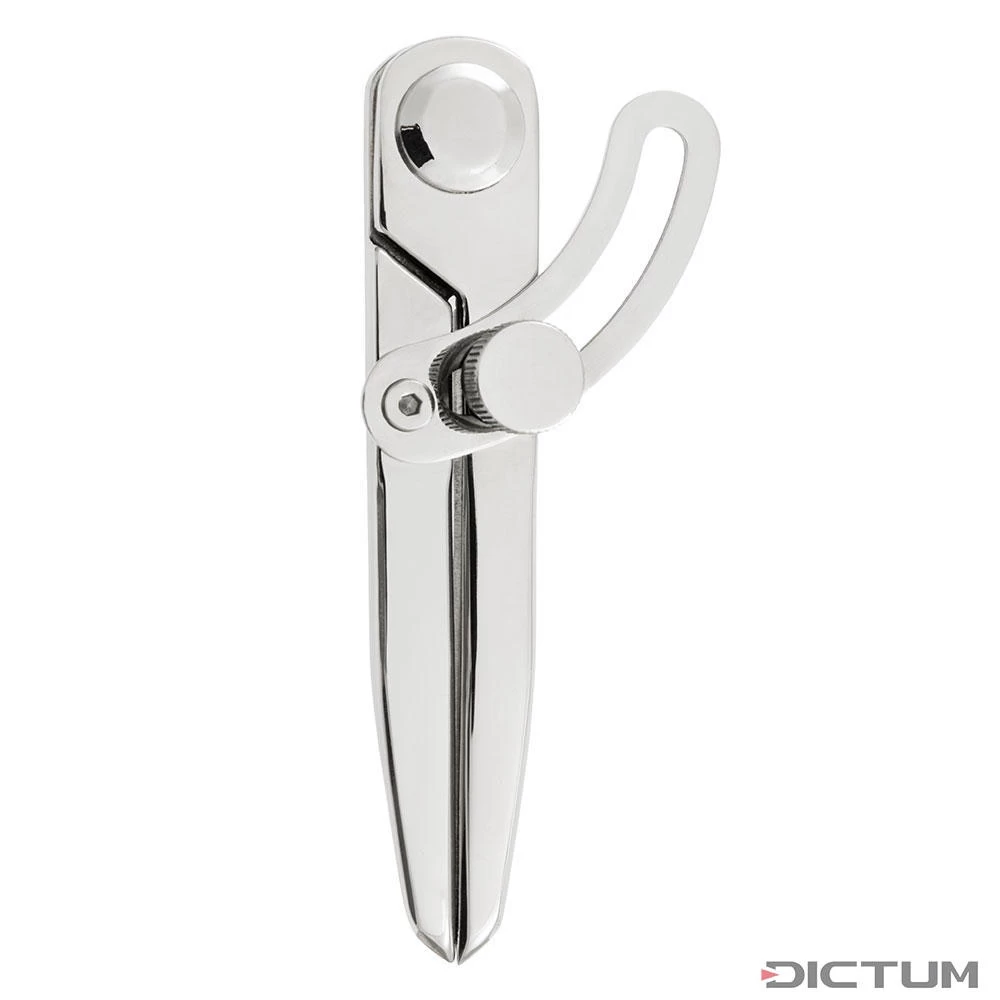 Compas en acier inoxydable poli, pour tracer des parallèles, reporter des mesures, diviser des distances ou tracer des cercles sur du cuir. Rayon maximal réglable : 100 mm, longueur des branches : 70 mm.