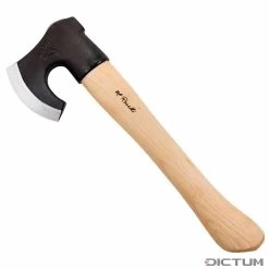 La hache traditionnelle de H. Roselli est un outil performant pour couper le bois et pour les travaux de sculpture sur bois. Cette hache est également parfaite pour les activités de plein air, camping, randonnée ou Bushcraft. La longue tête de hache avec angle de lame large et la courbure de la lame évitent que la hâche ne reste coincée dans le bois. La forme de la tête permet de travailler en gardant la main près de la lame, ce qui est idéal pour les travaux de précision. Livrée avec un étui léger en cuir finlandais tanné végétal pour protéger le tranchant. Une boucle pratique permet de porter l’étui à la ceinture ou de le fixer au sac à dos. Le manche en bouleau est traité à l’huile de lin pour assurer une bonne prise en main, même en cas d’humidité. Fabriqué en acier au carbone, aiguisé et fini à la main à Harmoinen, Finlande. Trempé à env. 60 HRC. Chaque produit est unique, le motif et la texture des matériaux naturels peuvent varier.